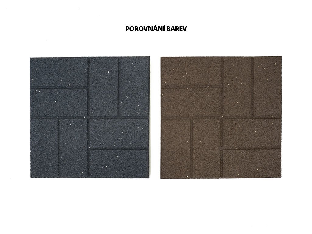 Gumová dlaždice 30 x 30 cm, výška 1,5 cm, v hnědé barvě. Směs gumové pryže a...