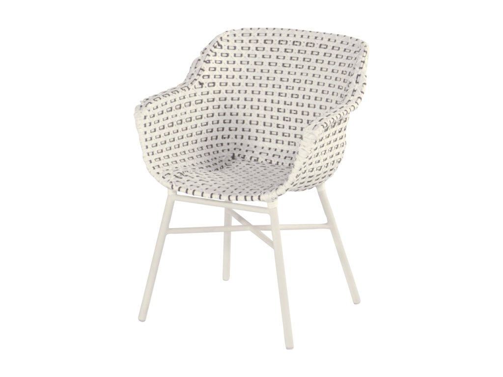 Konstrukce zahradního jídelního křesla Hartman DELPHINE je z teakového dřeva. Umělý ratan je v barevném provedení hnědobílá a na rozdíl od přírodního ratanu odolá povětrnostním vlivům, UV-záření, chloru i slané vodě.