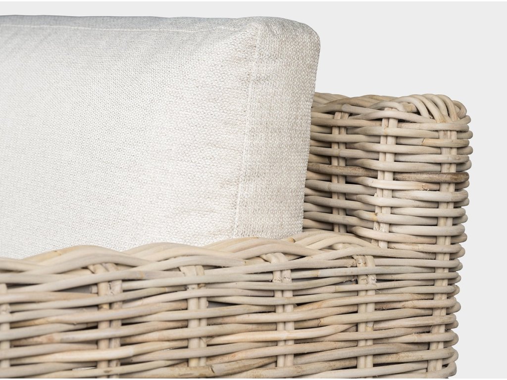Ratanové křeslo Mirabella nabízíme také v kombinaci s ratanovou pohovkou a teakovým stolkem jako zahradní sestavu.