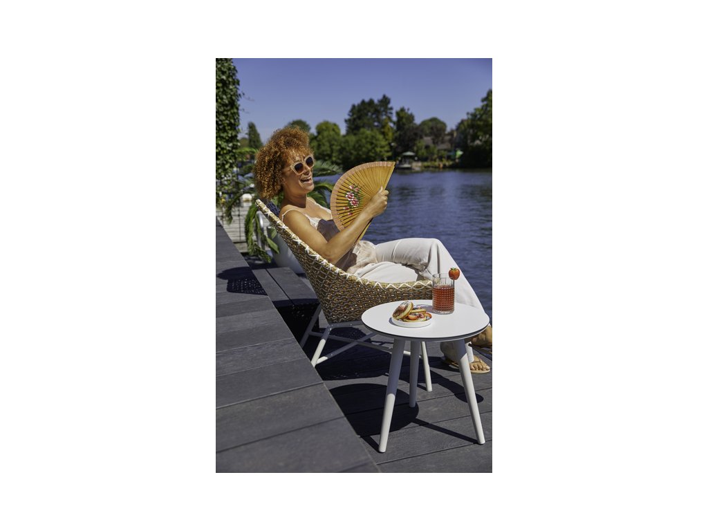 - Materiál: hliník (kostra), umělý ratan (výplet)