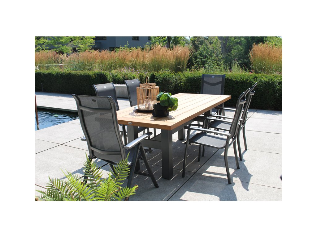 Hliník je jedním z nejoblíbenějších materiálů pro zahradní nábytek! Kromě trendy vzhledu má hliníkový materiál mnoho výhod. Hliník je extrémně pevný materiál, ale zároveň je velmi lehký a nepodléhá korozi. Pro zajištění správné ochrany hliníku je materiál ošetřen speciální vrstvou. Díky tomu optimálně odolává různým povětrnostním vlivům