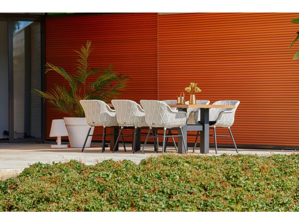 Hliník je jedním z nejoblíbenějších materiálů pro zahradní nábytek! Kromě trendy vzhledu má hliníkový materiál mnoho výhod. Hliník je extrémně pevný materiál, ale zároveň je velmi lehký a nepodléhá korozi. Pro zajištění správné ochrany hliníku je materiál ošetřen speciální vrstvou. Díky tomu optimálně odolává různým povětrnostním vlivům.