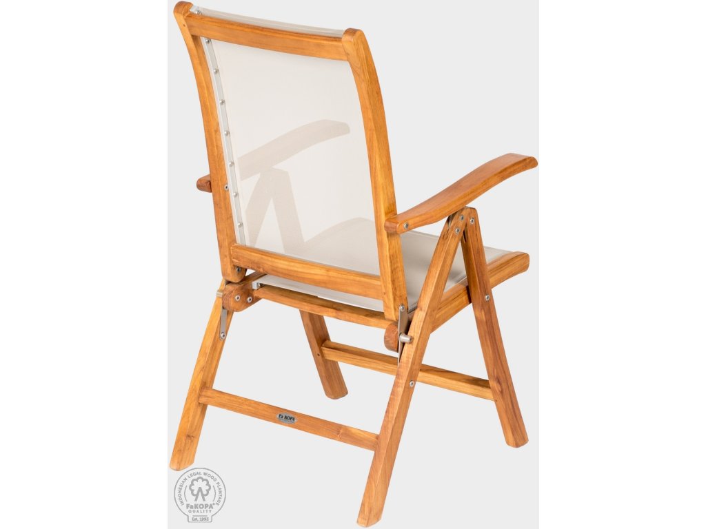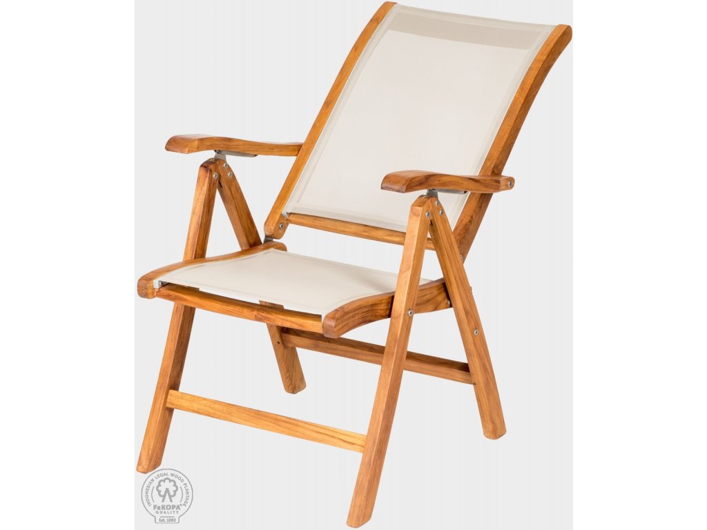 Zahradní křeslo Diva s batyline výpletem o výšce 112, šířce 63 a hloubce / délce 69 cm se velice snadno polohuje a lehce skládá. Batyline je výjimečná, velice pevná, tvarově stálá technická tkanina, která neabsorbuje okolní teplotu či vlhkost a odolává UV záření. Křeslo Diva je vhodné také k bazénům nebo do saun. Samozřejmostí je i kvalitní nerezové kování. Křeslo je ošetřena teakovým olejem.