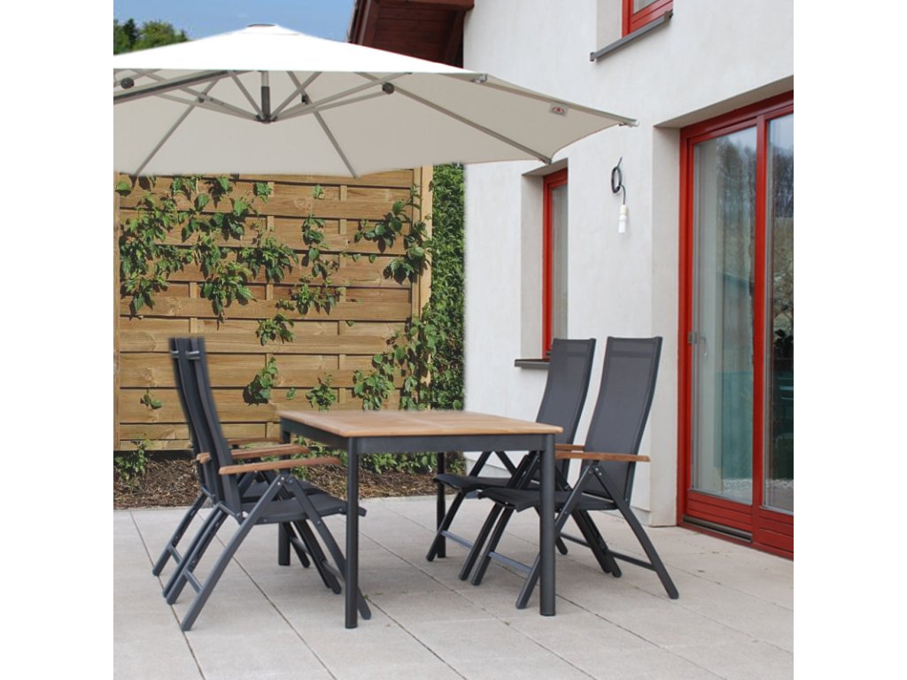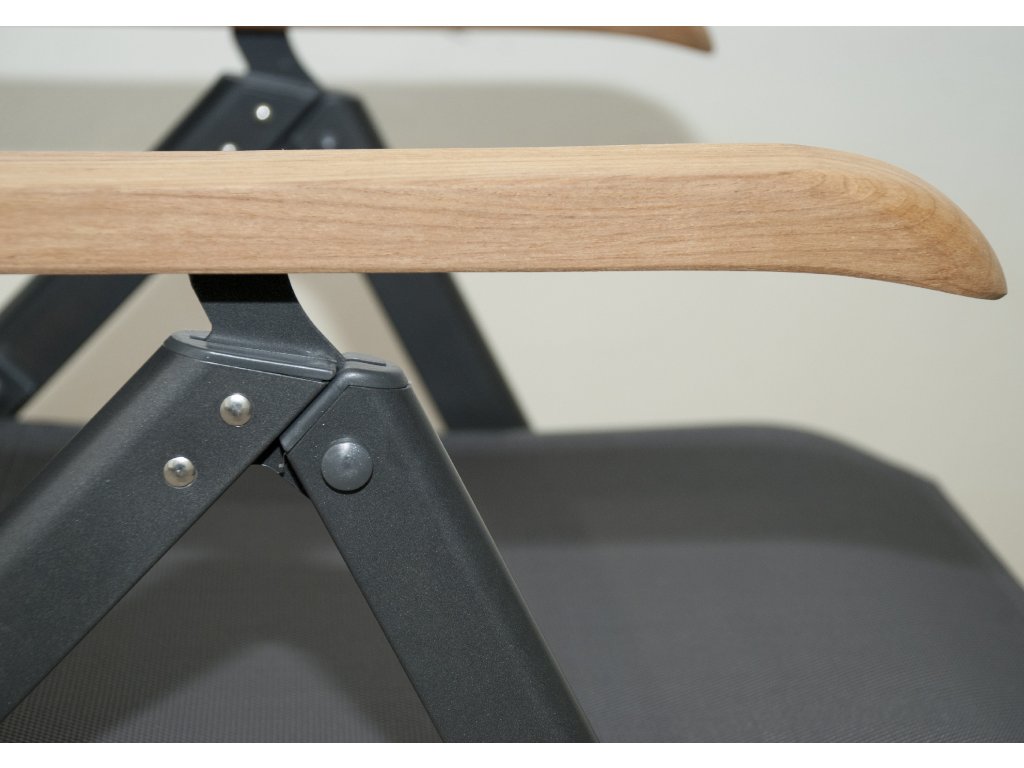 Polohovací zahradní křeslo CONCEPT teak je vyrobeno z bezúdržbových materiálů. Pevná hliníková konstrukce v antracitové barvě je doplněna výpletem z kvalitní umělé textilie v antracitové barvě. 7stupňový polohovací systém opěrky zaručí maximálně komfortní odpočinek. Vše doplňují stabilní teakové područky.