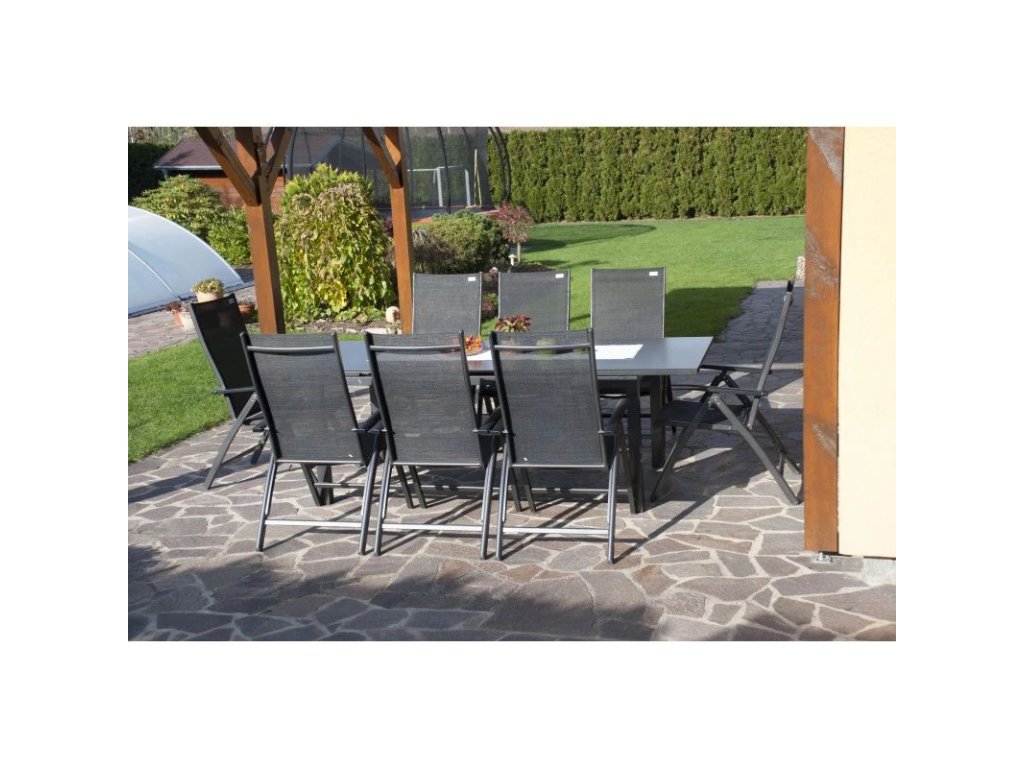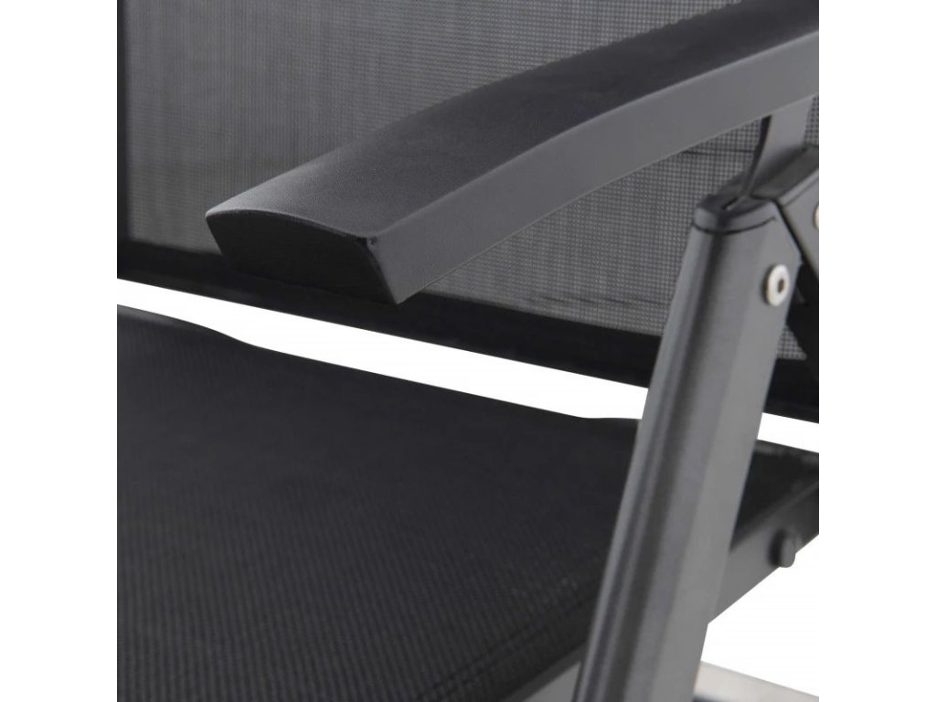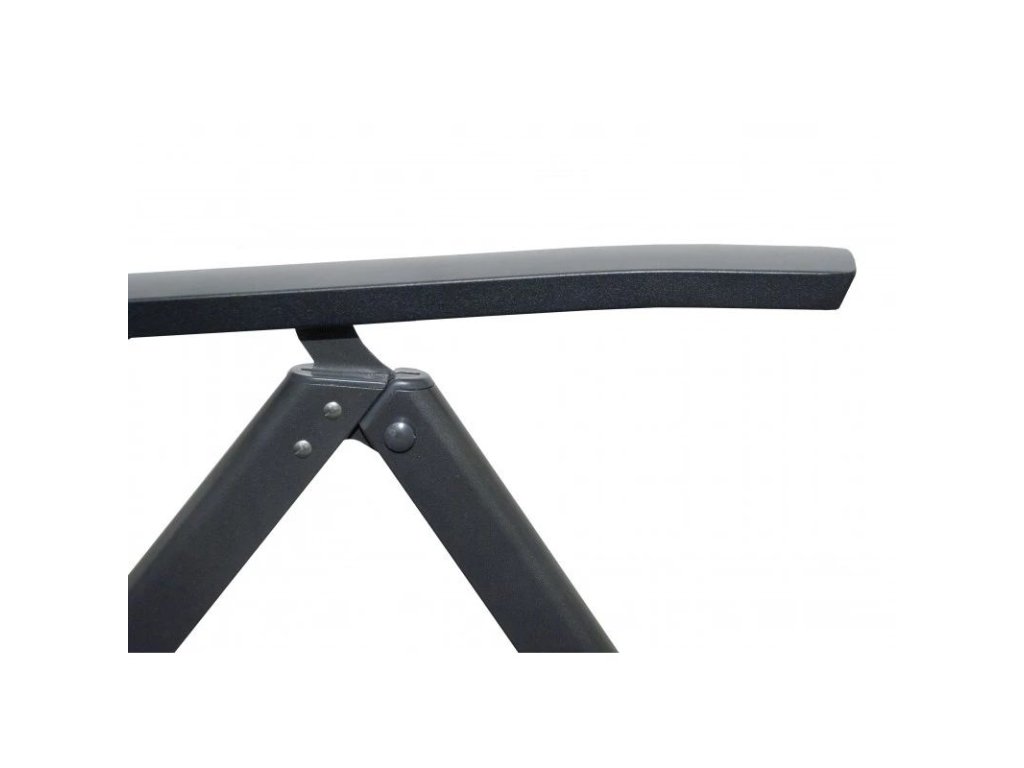 Polohovací zahradní křeslo EXPERT je vyrobeno z bezúdržbových materiálů. Pevná hliníková konstrukce v antracitové barvě je doplněna výpletem z kvalitní umělé textilie v černé barvě. 7stupňový polohovací systém opěrky zaručí maximálně komfortní odpočinek. Vše doplňují stabilní hliníkové područky.