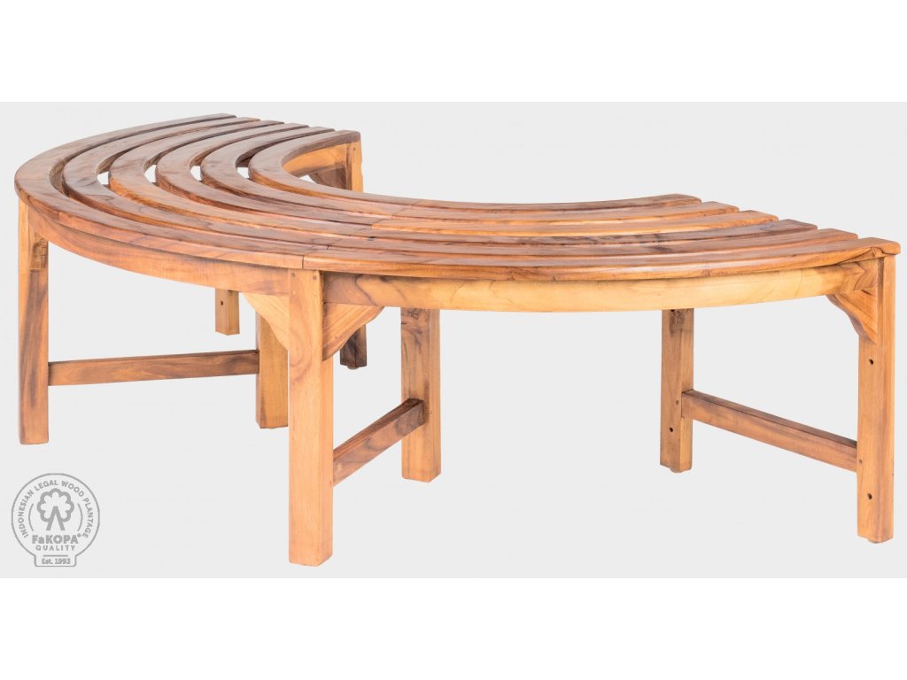 Výborně zpracovaná zahradní lavice Agnes o rozměrech 168 x 84 cm a výšce 46 cm v provedení bez zad je vhodná jako lavička kolem stromů. Díky použití truhlářských čepů, dlabů a kolíků, je tato nádherná lavice pevná a stabilní. Vnitřní průměr lavičky je 78 cm. Celý kruh kolem stromu vytvoří dva kusy. Lavice je ošetřena teakovým olejem.