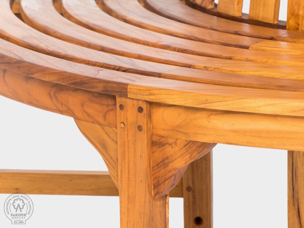 Výborně zpracovaná zahradní lavice Agnes o rozměrech 190 x 90 cm a výšce 91 cm v provedení se zády je vhodná jako lavička kolem stromů. Díky použití truhlářských čepů, dlabů a kolíků, je tato nádherná lavice pevná a stabilní. Vnitřní průměr lavičky je 60 cm. Celý kruh kolem stromu vytvoří dva kusy. Lavice je ošetřena teakovým olejem.