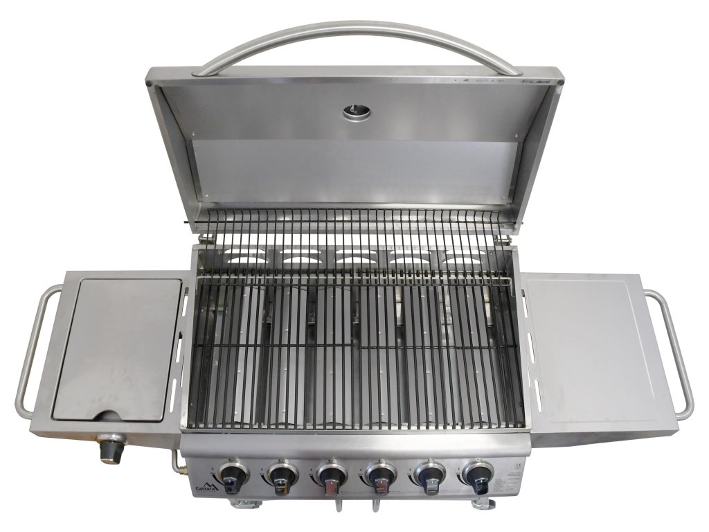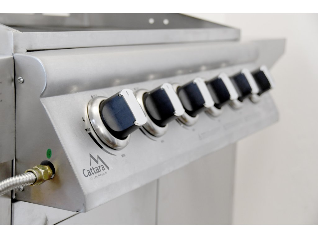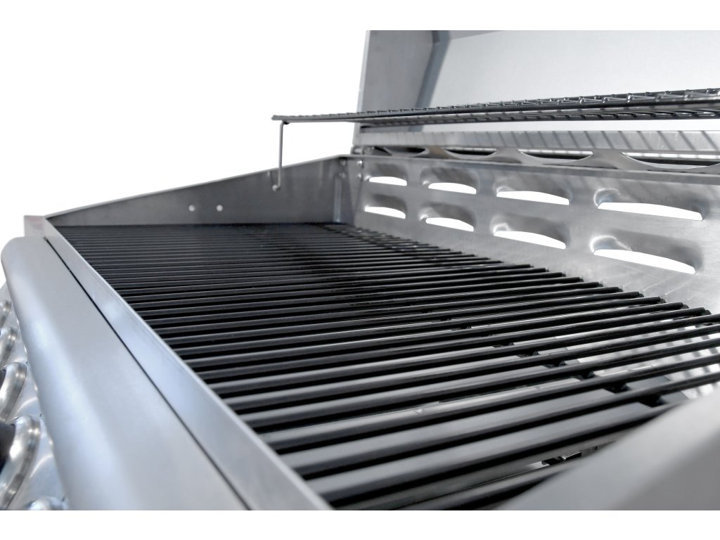 Hlavní grilovací prostor je osazen 6x hořáky se samostatnou regulací a piezo zapalováním. Díky možnosti vypnout prostřední hořáky je gril vhodný jak pro přímé, tak pro nepřímé grilování a je vybaven odkládacím roštem pro udržování teplot již hotových pokrmů.