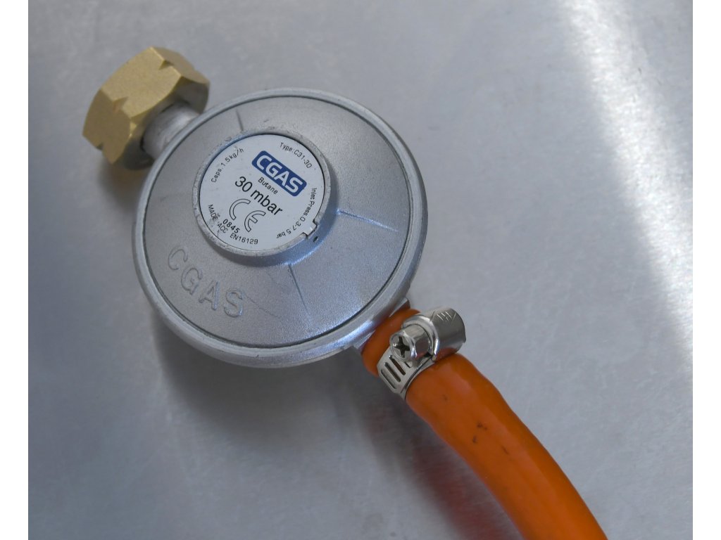 Součástí balení je i spojovací hadice k plynové lahvi a redukční ventil.