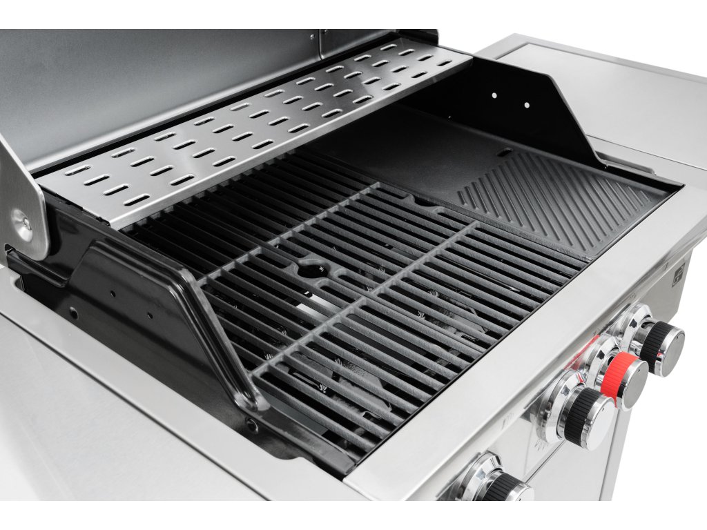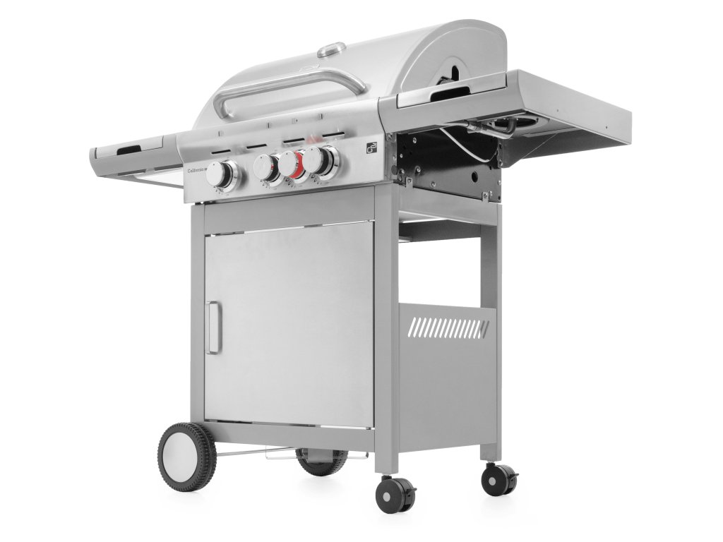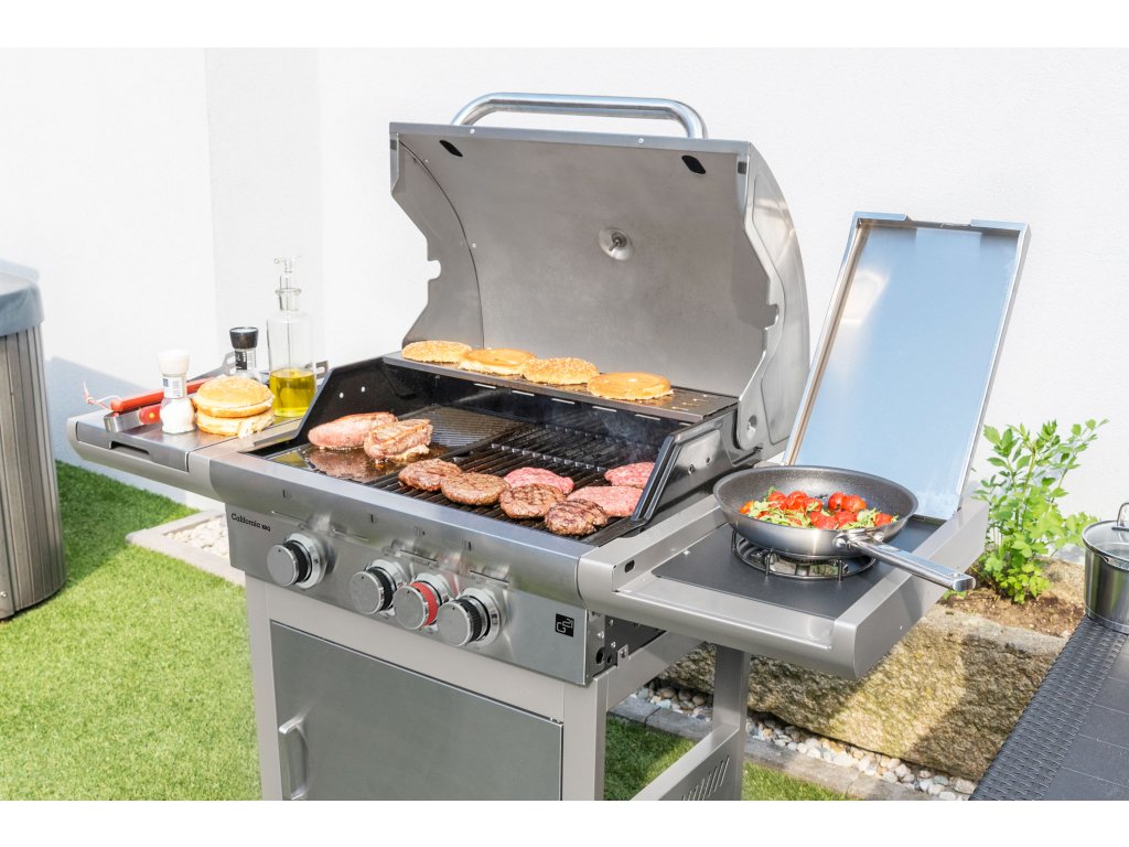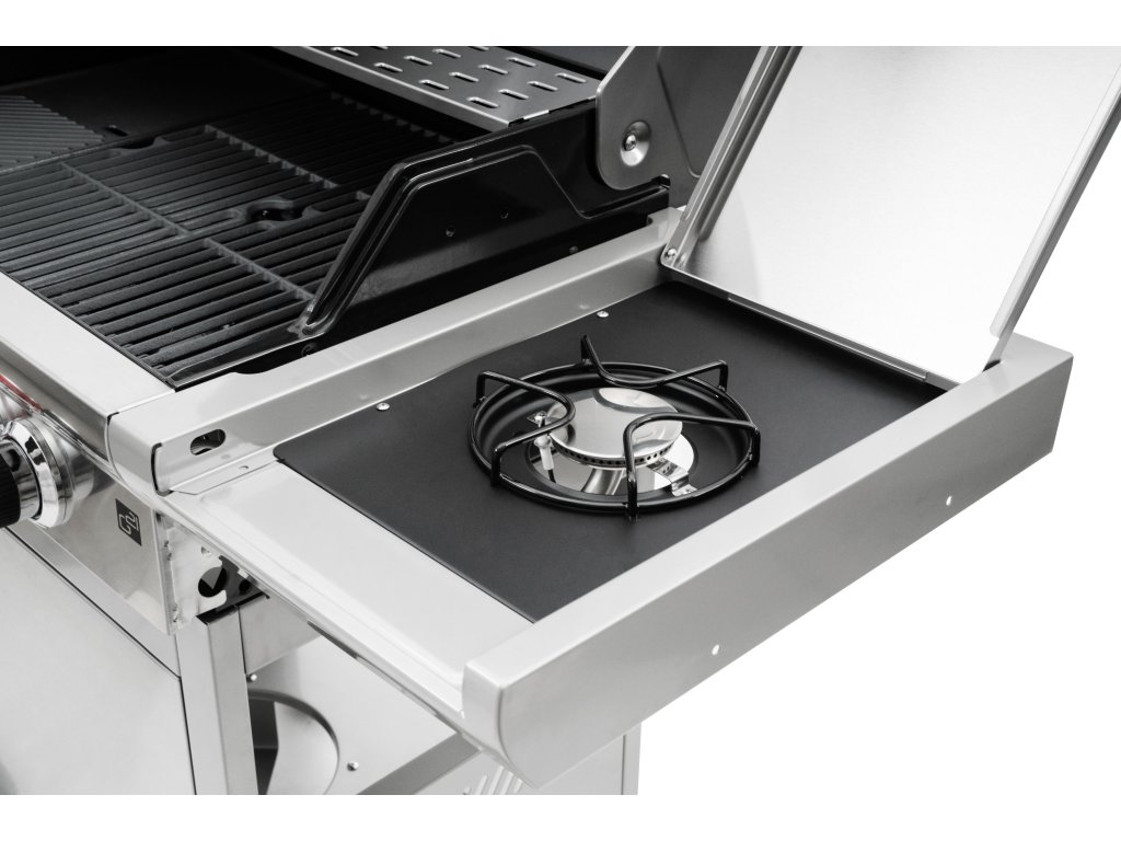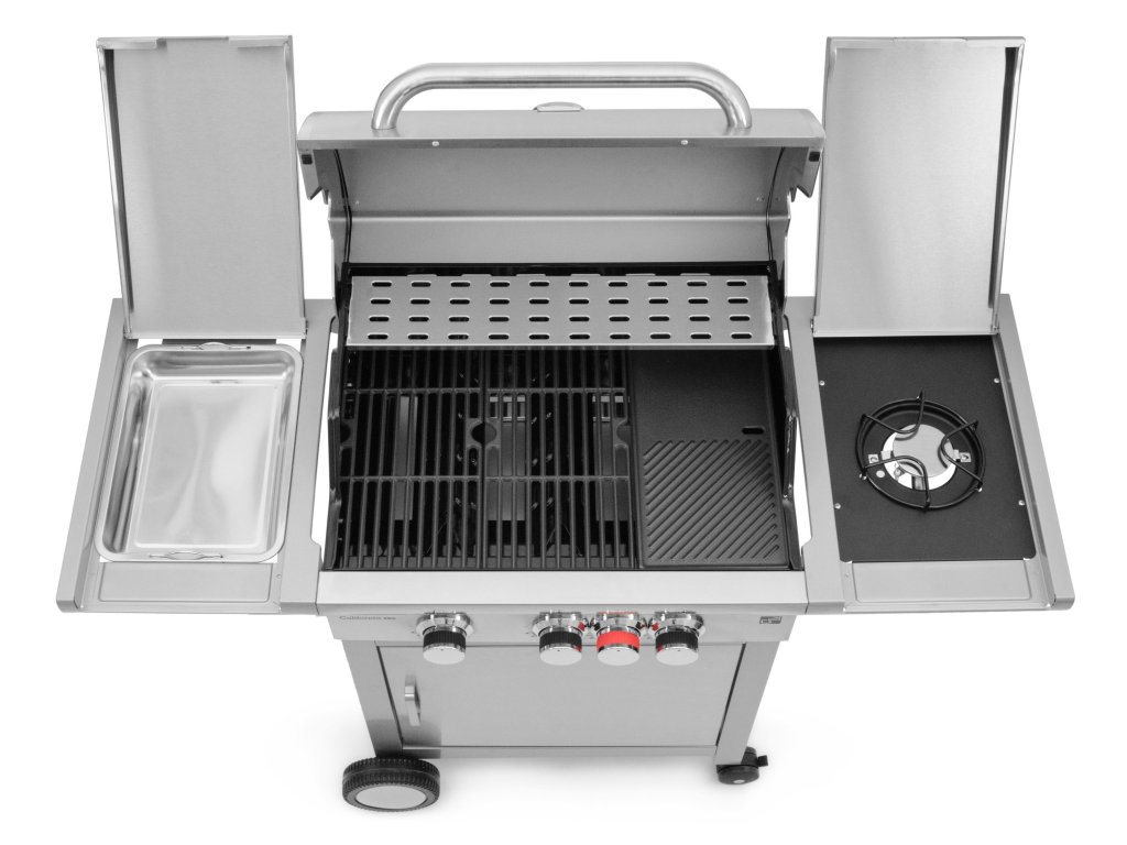 Gril disponuje třemi hlavními hořáky a jedním bočním, který můžete využít také jako vařič. Gril se zapaluje pomocí elektronického zapalování. Je vybavený litinovým roštem a litinovým plátem.