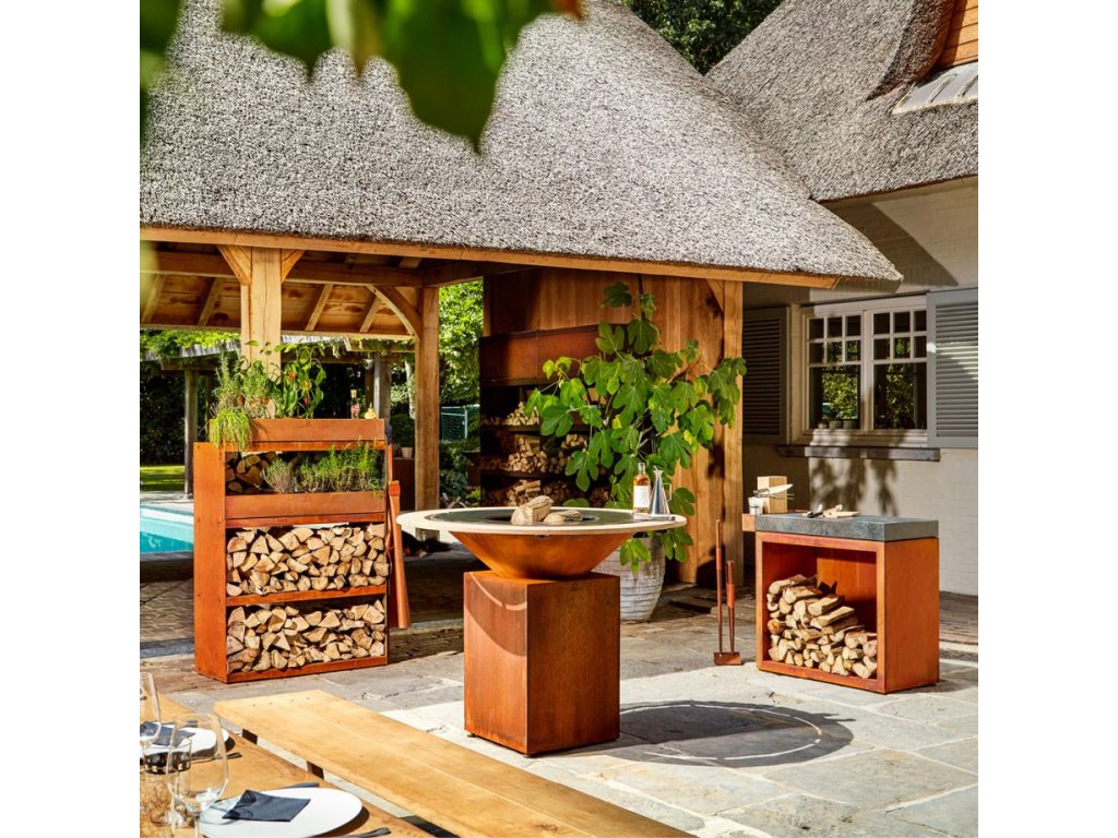 OFYR Butcher Block Storage 90 je skvělým doplňkem modelů OFYR Classic, protože poskytuje masivní pracovní desku pro přípravu jídla, praktickou přihrádku na příslušenství a dostatek prostoru pro uložení dřeva pod pracovní deskou. Můžete si vybrat mezi pracovní deskou z teakového dřeva nebo tmavě šedé keramiky, v závislosti na vašich preferencích a požadavcích na údržbu.