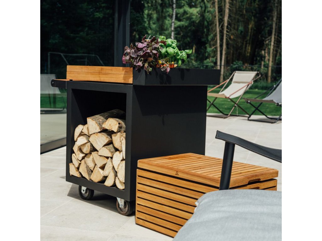 Stůl OFYR Mise en Place Table 65 PRO je skvělým doplňkem modelů OFYR PRO, protože poskytuje masivní pracovní desku pro přípravu jídla, praktickou přihrádku na příslušenství a dostatek prostoru pro uložení dřeva pod pracovní deskou. Můžete si vybrat mezi pracovní deskou z teakového dřeva nebo tmavě šedé keramiky, v závislosti na vašich preferencích a požadavcích na údržbu.