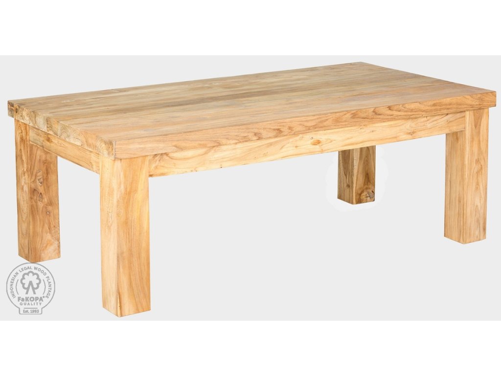 Masivní konferenční stolek o rozměrech 140 x 70 x 50 cm je vyrobený z kvalitního recyklovaného indonéského teaku. Síla desky tohoto stolku je 5 cm. Výrobky z tohoto dřeva jsou ekologické, jedná se o znovu využité staré dřevo. Každý kus nábytku je tedy jedinečný, je mu ponecháno charakteristické opotřebení dřeva.