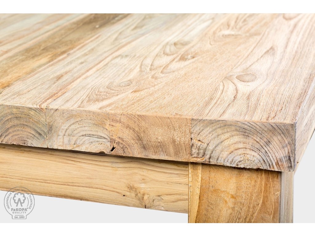 Teakové dřevo pochází ze stromu teka obrovská jehož domovem jsou tropické pralesy jižní a jihovýchodní Asie. Vyznačuje se tvrdým, pružným a pevným dřevem, které je odolné vůči UV záření, plísním, škůdcům a nepříznivým povětrnostním vlivům. Dalším typickým znakem je objemová stálost a malá nasákavost, tím pádem nedochází k rozesychání. Vzhledem k těmto vlastnostem je teakové dřevo ideální pro výrobu venkovního nábytku. FaKOPA používá zásadně tvrdé jádrové dřevo z vybraných jávských plantáží. Ke každému produktu se vystavuje certifikát o původu zboží.