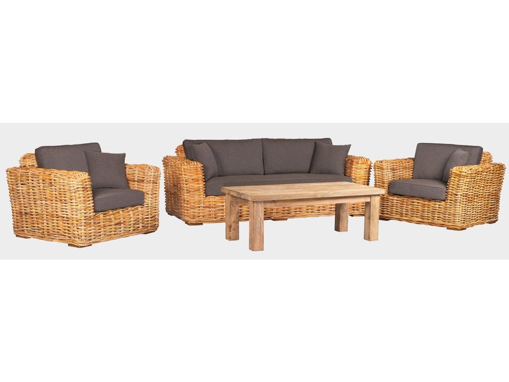Hledáte originální a kvalitní nábytek do domu, na terasu nebo klidně do pergoly? Tento set bude jistě tou správnou volbou. Tato krásná sedací souprava vyrobená z ratanu se stolkem z teakového dřeva se vyznačuje především odolností a dlouhou životností. Nábytek z ratanu se snadno udržuje, je odolný vůči povětrnostním podmínkám i mrazu, lze ho tak využít v interiéru i exteriéru. Jen dávejte pozor na to, že na přímém slunci a dešti dochází k šednutí nábytku z ratanu. Proto by tento nábytek měl být venku alespoň pod střechou. Teakové dřevo je velice odolné proti vnějším vlivům, nepříznivé počasí, déšť, UV záření ani plísně a škůdci nemají šanci.