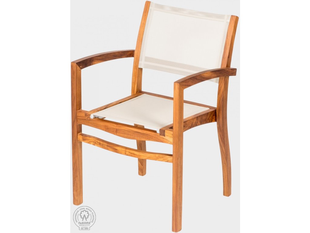 Křeslo ROMA s batyline výpletem o výšce 83, šířce 55 a hloubce / délce 55 cm je vyrobeno z kvalitního indonéského teaku. Samozřejmostí je také kvalitní nerezové kování. Je vhodné také k bazénům nebo do saun. Jednoduchým způsobem lze stohovat až 5 křesel na sebe.