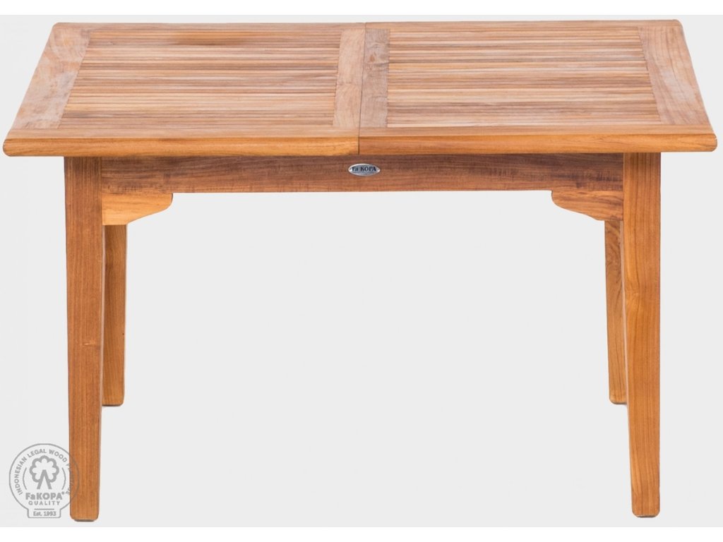 Obdélníkový rozkládací stůl Elegante o rozměrech 100 x 130-180 cm a výšce 78 cm je vyroben z kvalitního indonéského teaku. Stůl má špičkově provedené spoje, švédská nerezová spona, fixace jednotlivých lamel a rybinový zámek zajišťují maximální stabilitu. Deska zahradního stolu má tloušťku 3,5 cm. Nohy stolu jsou chráněny plastovými krytkami. Otvor pro slunečník je zakryt mosaznou zátkou. Stůl je možné ze základního rozměru 130 cm zvětšit až na rozměr 180 cm.