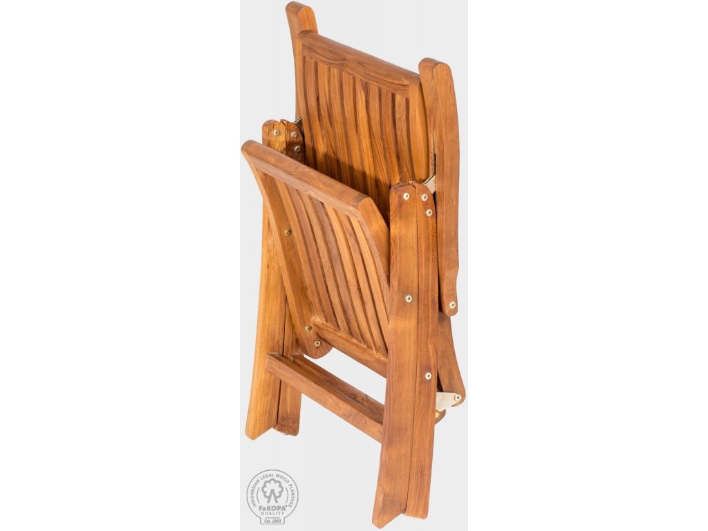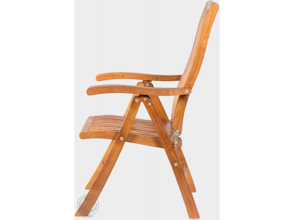 Masivní skládací křeslo Riva o výšce 110, šířce 60 a hloubce / délce 65 cm je vyrobené z kvalitního indonéského teaku. Pevnost, stabilita a design řadí tento typ křesla mezi nejkvalitnější na českém trhu. Na špičkové úrovni je především dílenské zpracování, zesílené nohy, zesílení rámu sedáku i opěradla, které bylo pečlivě anatomicky natvarováno pro vaše větší pohodlí. Zahradní křeslo Riva se velice snadno polohuje a lehce skládá. Samozřejmostí je i kvalitní mosazné kování. Nosnost teakového křesla je 150 kg.
