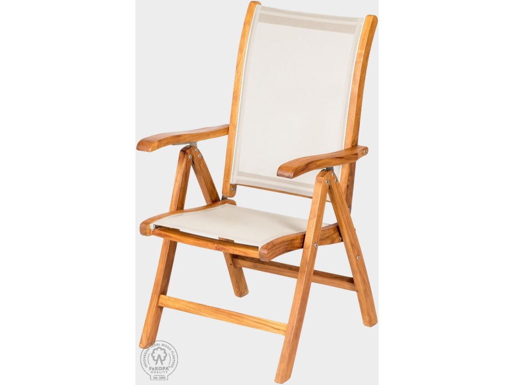 Obdélníkový rozkládací stůl Elegante o rozměrech 100 x 130-180 cm a výšce 78 cm je vyroben z kvalitního indonéského teaku. Stůl má špičkově provedené spoje, švédská nerezová spona, fixace jednotlivých lamel a rybinový zámek zajišťují maximální stabilitu. Deska zahradního stolu má tloušťku 3,5 cm. Nohy stolu jsou chráněny plastovými krytkami. Otvor pro slunečník je zakryt mosaznou zátkou. Stůl je možné ze základního rozměru 130 cm zvětšit až na rozměr 180 cm. Křeslo Diva o výšce 112, šířce 63 a hloubce / délce 69 cm se velice snadno polohuje a lehce skládá. Samozřejmostí je také kvalitní nerezové kování. Je vhodné také k bazénům nebo do saun.