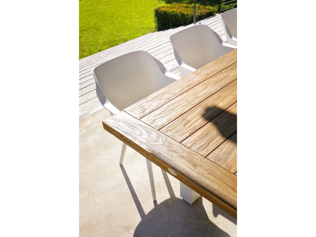 Zahradní jídelní stůl Hartman YASMANI je vyroben z hliníkové konstrukce a z přírodní desky z recyklovaného teaku. Prostorný a variabilní stůl má originální bytelnou podnož. Elegantní vzhled splňuje veškeré požadavky na luxusní zahradní nábytek. Nohy jsou stavěny do H-rámu, který je nejen stylový, ale poskytuje stolu dobrou stabilitu. Působí robustně a dodá prostoru luxus.