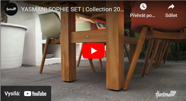 Zahradní set složený z jídelního stolu Hartman YASMANI a ergonomických židlí Sophie, které mají velkoryse pojaté sedadlo a pružnou opěrku zad, okamžitě upoutá vaši pozornost a překvapí vás svou pohodlností. Díky použitým materiálům je prakticky bezúdržbový a může být venku po celý rok.