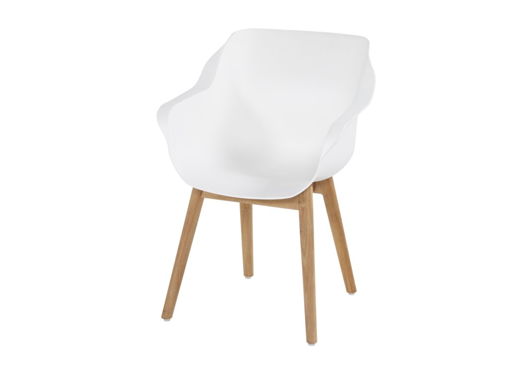 Zahradní jídelní židle SOPHIE Studio z kolekce Hartman je vyrobena z vysoce kvalitního plastu (tzv. Resinu) a podnože z teakového dřeva. Je velice pohodlná a nosnost je do 120 kg. Stálobarevný povrch je odolný vůči počasí. Díky matné povrchové úpravě je nábytek příjemný na omak a minimalizuje pocení. Zároveň tato úprava odstraňuje nepříjemné odlesky slunečního světla.