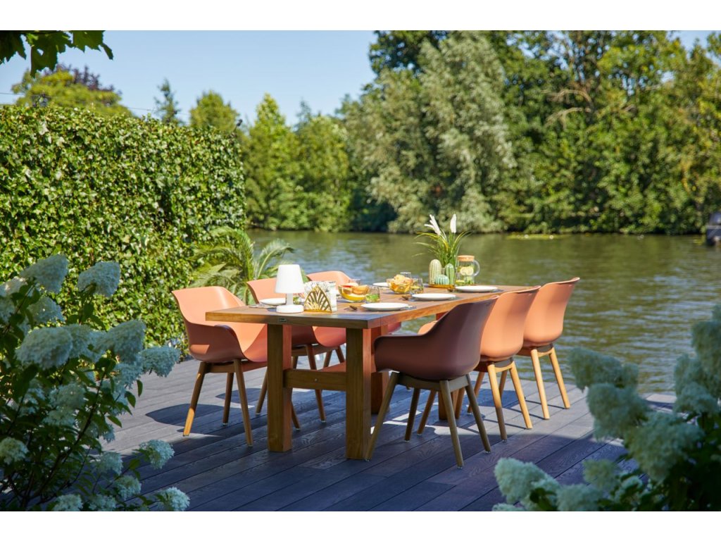 Zahradní jídelní stůl Hartman YASMANI je vyroben z teakového dřeva. Prostorný a variabilní stůl má originální bytelnou podnož. Elegantní vzhled splňuje veškeré požadavky na luxusní zahradní nábytek. Nohy jsou stavěny do H-rámu, který je nejen stylový, ale poskytuje stolu dobrou stabilitu. Působí robustně a dodá prostoru luxus.