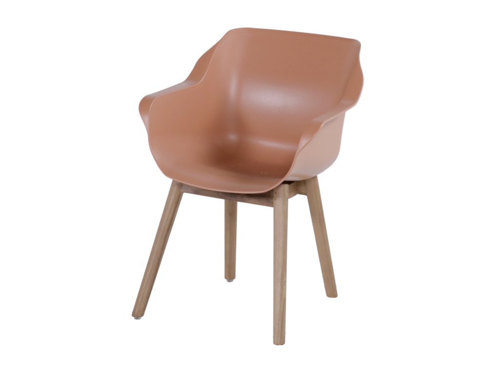 Zahradní jídelní židle SOPHIE Studio z kolekce Hartman je vyrobena z vysoce kvalitního plastu (tzv. Resinu) a podnože z teakového dřeva. Je velice pohodlná a nosnost je do 120 kg. Stálobarevný povrch je odolný vůči počasí. Díky matné povrchové úpravě je nábytek příjemný na omak a minimalizuje pocení. Zároveň tato úprava odstraňuje nepříjemné odlesky slunečního světla.