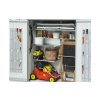 Nemáte dostatek prostoru a potřebujete uklidit zahradní vybavení a nářadí, dětské hračky, sportovní náčiní a další věci, které se nevejdou do domu, ale chcete je mít pod střechou a bezpečně pod zámkem? Pořiďte si praktickou a krásnou skříň na nářadí Biohort prémiové kvality, která vyhovuje i nárokům moderní architektury. Skříň je široká 155 cm (přední strana s dveřmi) a 83 cm hluboká. Skříně Biohort nabízíme ve čtyřech barevných provedeních a třech velikostech.