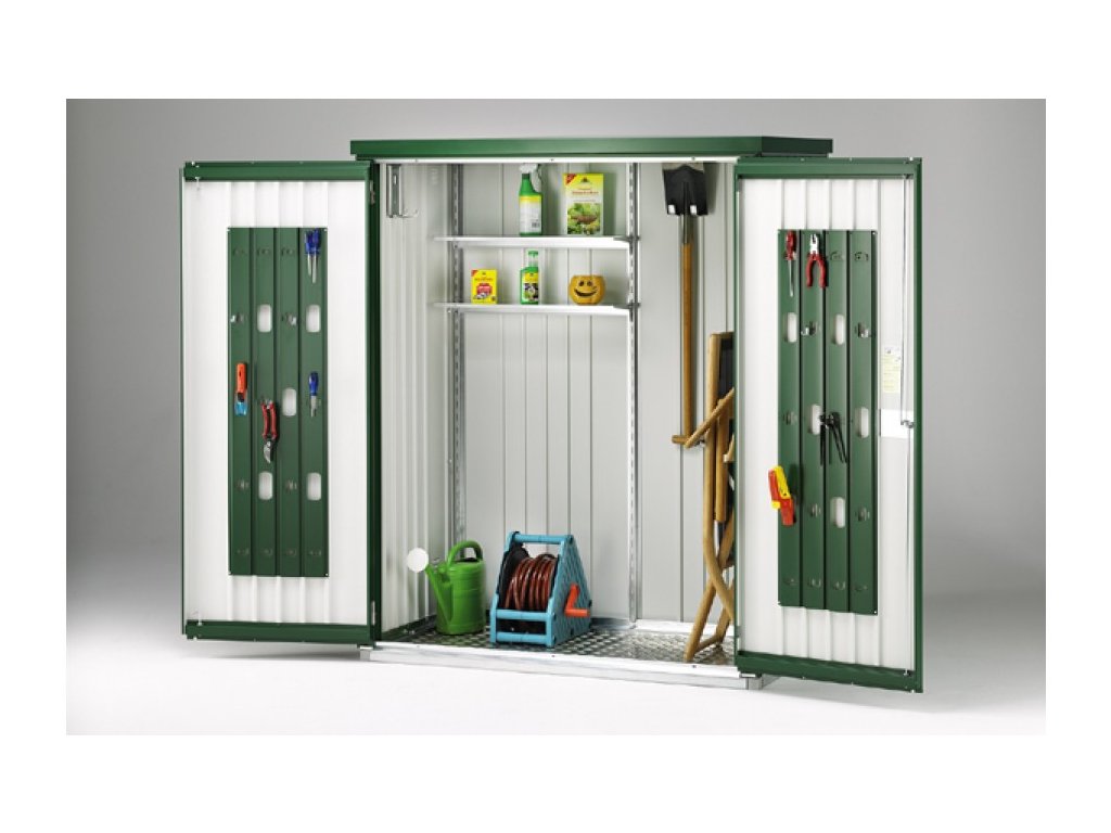 Nemáte dostatek prostoru a potřebujete uklidit zahradní vybavení a nářadí, dětské hračky, sportovní náčiní a další věci, které se nevejdou do domu, ale chcete je mít pod střechou a bezpečně pod zámkem? Pořiďte si praktickou a krásnou skříň na nářadí Biohort prémiové kvality, která vyhovuje i nárokům moderní architektury. Skříň je široká 155 cm (přední strana s dveřmi) a 83 cm hluboká. Skříně Biohort nabízíme ve čtyřech barevných provedeních a třech velikostech.