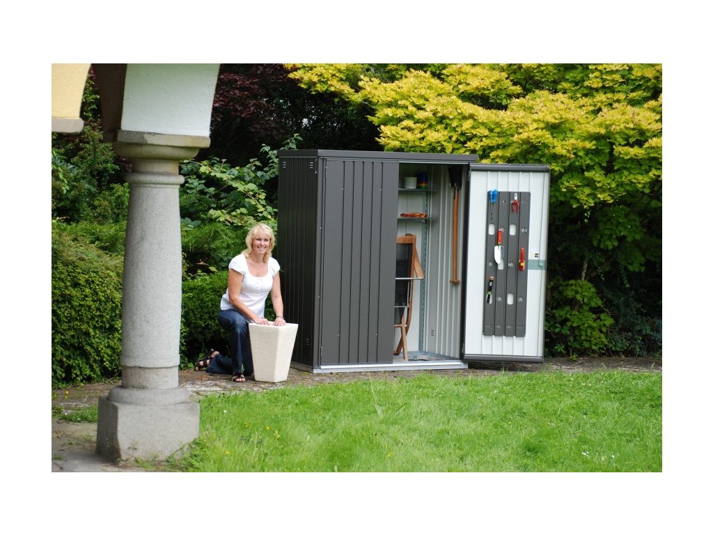 Nemáte dostatek prostoru a potřebujete uklidit zahradní vybavení a nářadí, dětské hračky, sportovní náčiní a další věci, které se nevejdou do domu, ale chcete je mít pod střechou a bezpečně pod zámkem? Pořiďte si praktickou a krásnou skříň na nářadí Biohort prémiové kvality, která vyhovuje i nárokům moderní architektury. Skříň je široká 191 cm (přední strana s dveřmi) a 83 cm hluboká. Skříně Biohort nabízíme ve čtyřech barevných provedeních a třech velikostech.