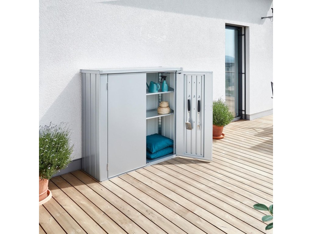 Skříňka na terasu Biohort ROMEO M, stříbrná metalíza