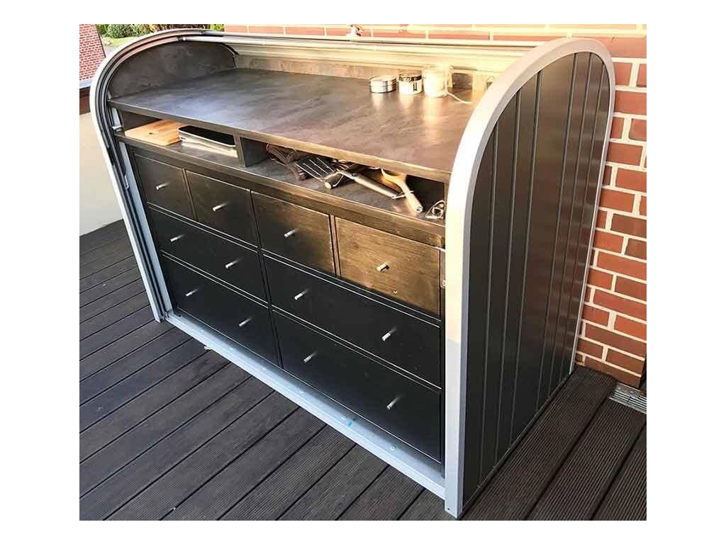 Vše pohotově při ruce, zároveň elegantně uklizeno a chráněno před povětrnostními vlivy. S pomocí dvojité podlážky vytvoříte z boxu ideální úložný prostor.