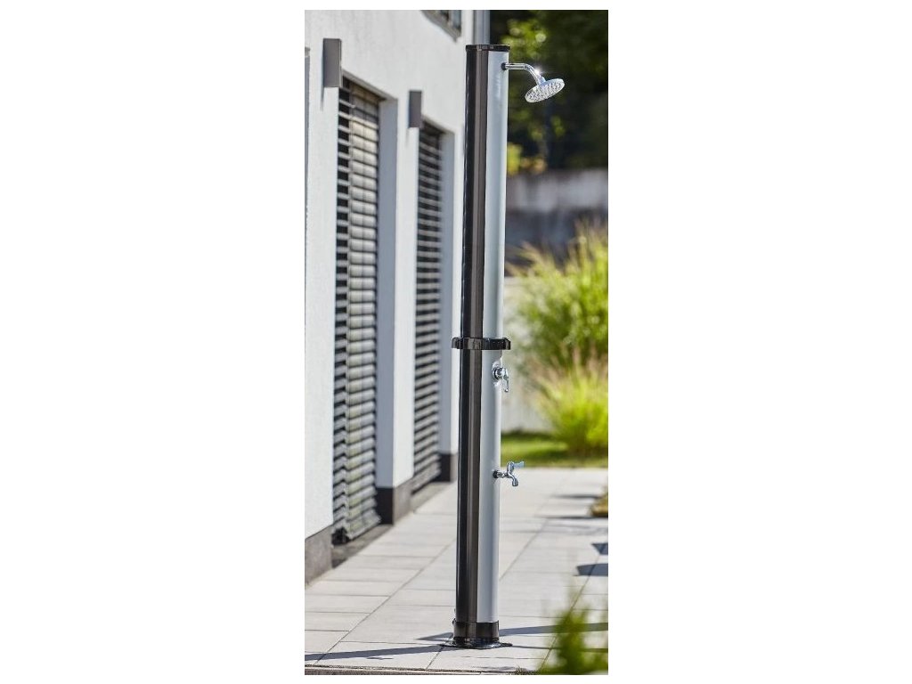 Solární sprcha je ideální zdroj teplé vody bez použití elektřiny. Voda je v solárním zásobníku jednoduše ohřívána sluníčkem až na 60°C. K tomu přispívá i černé provedení sprchy. Sprcha je vybavena mísící pákovou baterií, abyste si nastavili teplotu vody, která vám bude vyhovovat.