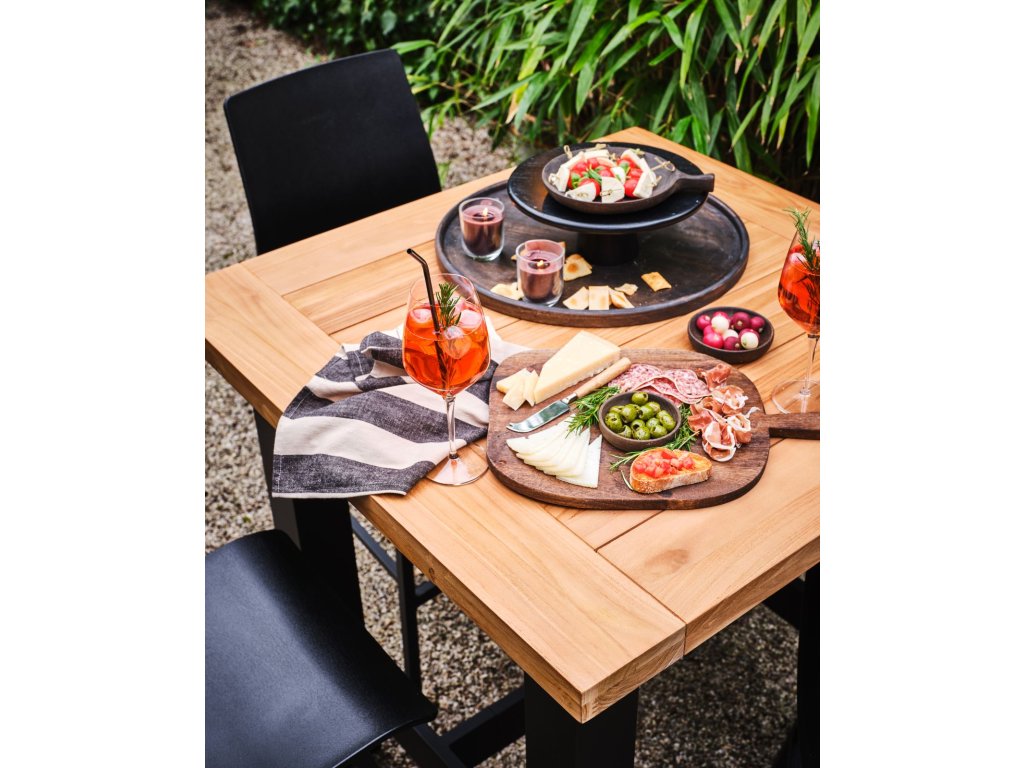 Tento stůl z kolekce YASMANI má originální čtvercový tvar, který se hodí do menších prostor. Poskytuje útulnost ve vaší zahradě, na balkoně nebo terase a to hlavně díky desce stolu, která je vyroben z teakového dřeva! Stůl je vyroben z krásné certifikované teakové desky a pevné hliníkové základně. Tyto materiály lze ponechat venku po celý rok a velmi snadno se čistí. Takto si stůl můžete užívat po celý rok!