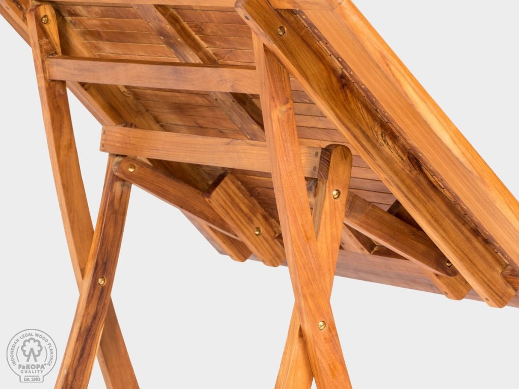 Deska stolu má tloušťku 3,5 cm. Praktický systém skládání vám umožní složení stolu během několika vteřin. Stůl lze snadno přemístit a uskladnit i do užšího prostoru. Zahradní stůl Vasco je ošetřen teakovým olejem.