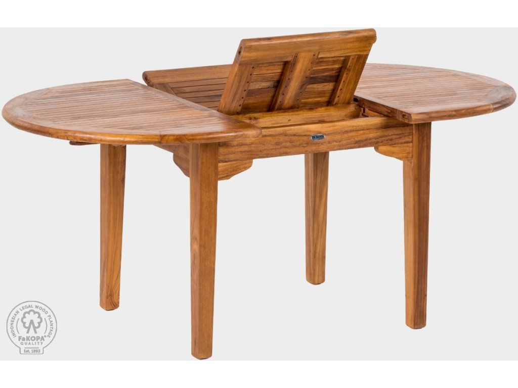 Oválný rozkládací stůl Elegante má špičkově provedené spoje. Švédská nerezová spona, fixace jednotlivých lamel a rybinový zámek zajišťují maximální stabilitu. Deska zahradního stolu má tloušťku 3,5 cm. Nohy stolu jsou chráněny plastovými krytkami. Otvor pro slunečník je zakryt mosaznou zátkou. Stůl je možné ze základního rozměru 180 cm zvětšit až na rozměr 240 cm. Stůl je ošetřen teakovým olejem.
