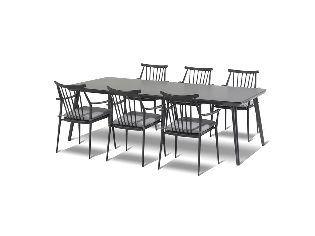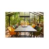 Zahradní stůl SOPHIE HARTMAN je opatřen uprostřed ještě vzpěrou (5 noha u stolu), aby byl stůl co nejpevnější. Díky své velikosti se k němu pohodlně vejde 6-8 osob. Matná povrchová úprava omezuje nepříjemné odlesky slunečního světla a nejsou na ní vidět otisky rukou. Hliníková konstrukce je pevná a odolná a i díky tomu lze nechat stůl po celý rok venku.
