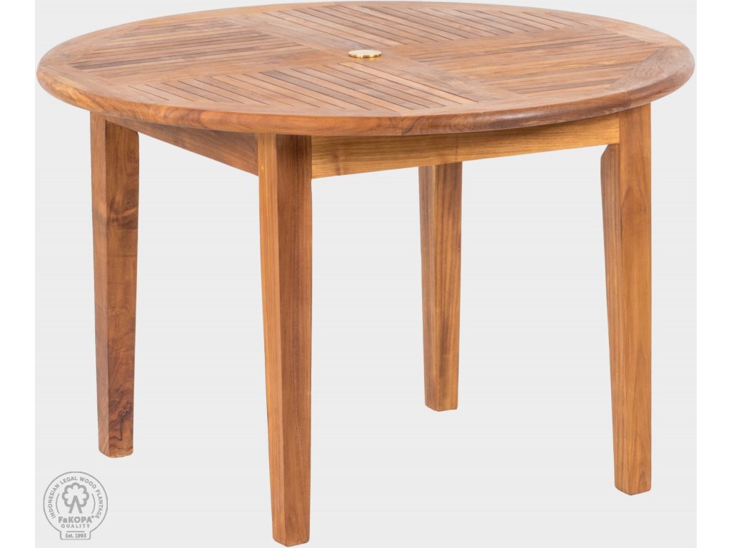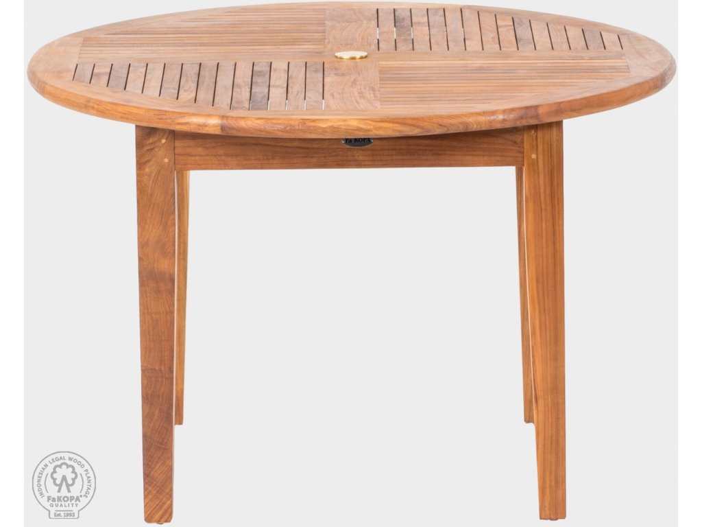 Krásný kvalitní stůl Dante o průměru 120 cm je vyrobený z kvalitního indonéského teaku. Výroba tradičními a osvědčenými truhlářskými postupy spolu s teakovým dřevem zajišťuje vysokou kvalitu a dlouhou životnost.