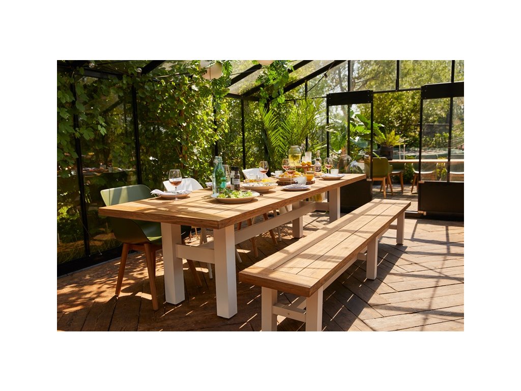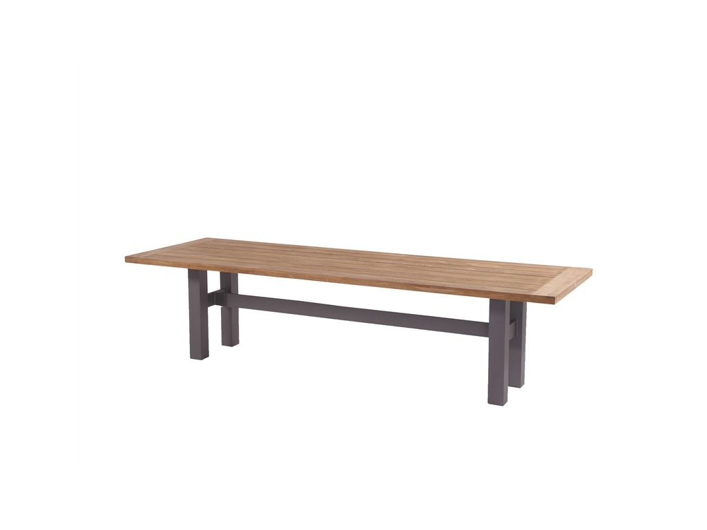 Tento zahradní jídelní stůl Hartman YASMANI o rozměru 300 x 100 x 76 cm je vyroben z hliníku ve 4 různých barevných odstínech kostry a deska je z recyklovaného teaku. Prostorný, velký a variabilní stůl má originální bytelnou podnož. Elegantní vzhled splňuje veškeré požadavky na dnešní luxusní zahradní nábytek. Nohy jsou stavěny do H-rámu, který je nejen stylový, ale poskytuje stolu dobrou stabilitu.