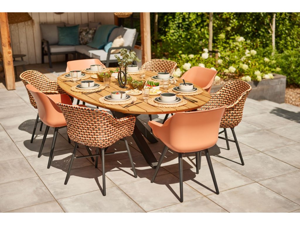 Tento stůl má originální oválný tvar, který vytváří prostor navíc a hodí se pro větší množství strávníků. Poskytuje extra útulnost ve vaší zahradě a to hlavně díky desce stolu, která je vyroben z teakového dřeva! Stůl je vyroben z krásné certifikované teakové desky a pevné hliníkové základně. Tyto materiály lze ponechat venku po celý rok a velmi snadno se čistí. Takto si stůl můžete užívat po celý rok!
