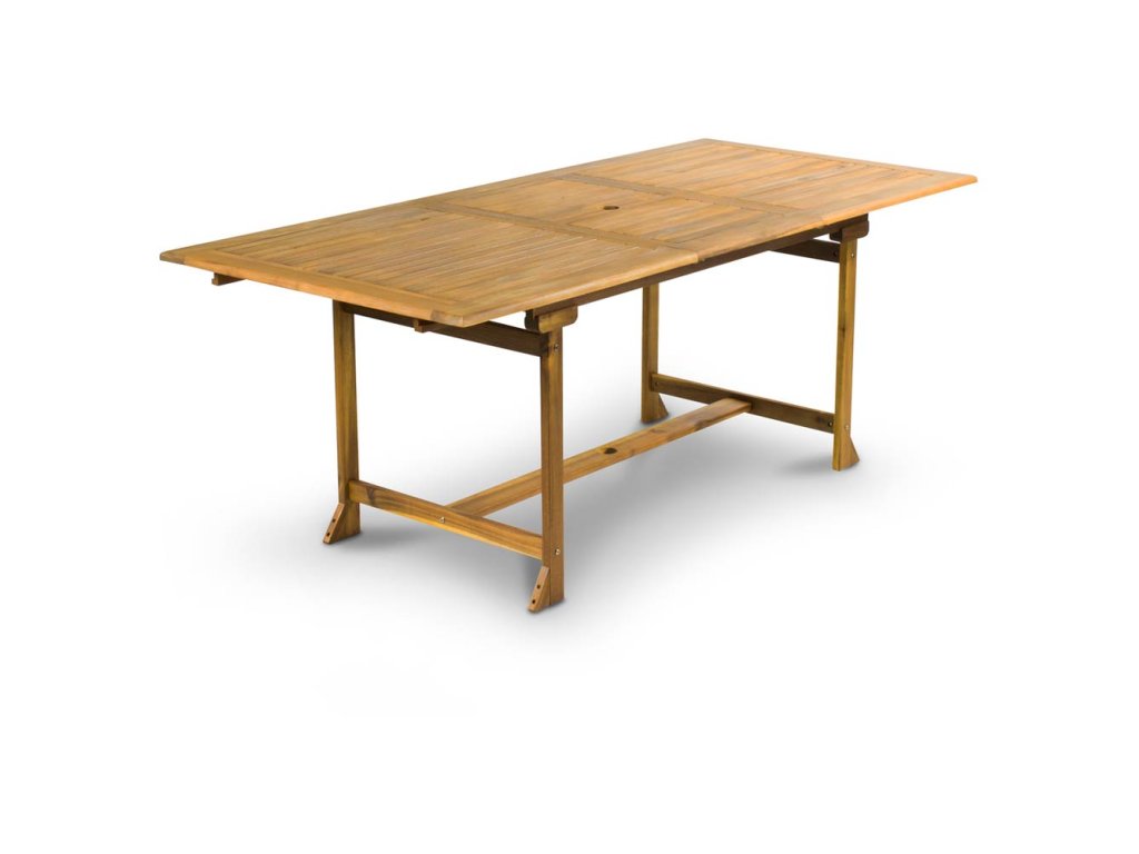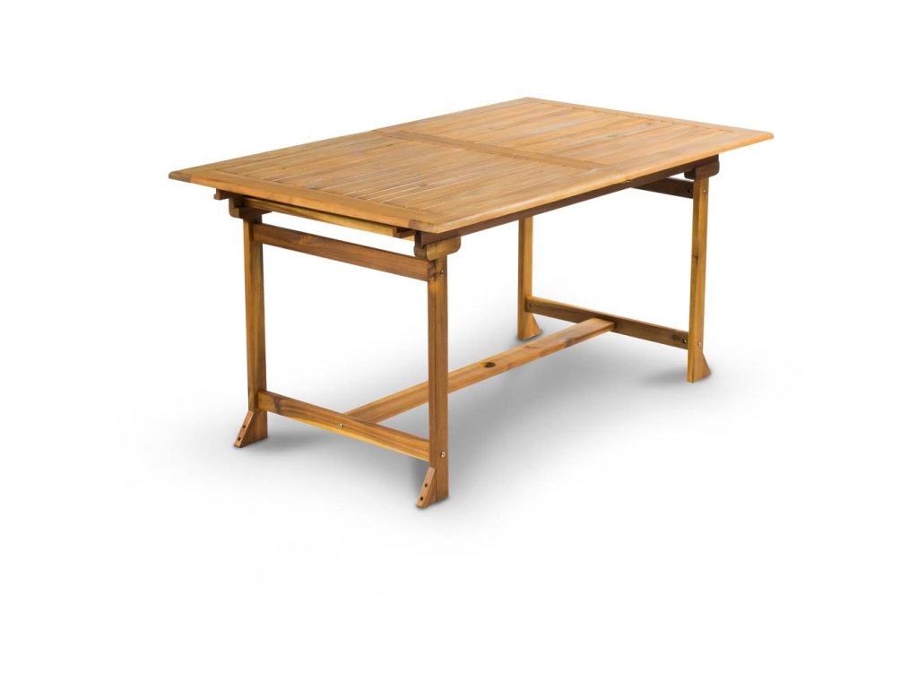 Stůl obdélníkového tvaru vyniká kvalitním zpracováním a vysokou stabilitou. Díky použitému materiálu, dřevu akácie, nabízí tento nábytek vysokou odolnost vůči povětrnostním vlivům, stárnutí, ale také plísním, houbám a dřevokaznému hmyzu.