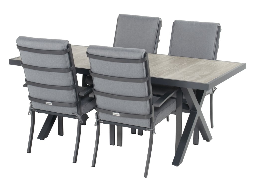 Stůl je vyroben z hliníkové překřížené základny s keramickou stolovou deskou, která se skládá ze dvou kusů. Oba materiály jsou nenáročné na údržbu. Tyto materiály jsou také velmi odolné vůči různým povětrnostním vlivům a nepřízni počasí. Díky tomu může stůl zůstat venku po celý rok.