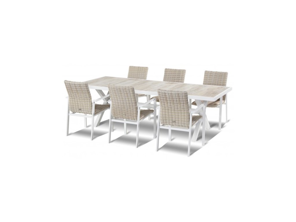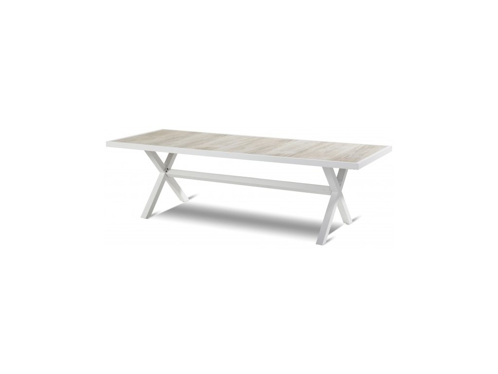 Stůl je vyroben z hliníkové překřížené základny s keramickou stolovou deskou, která se skládá ze dvou kusů. Oba materiály jsou nenáročné na údržbu. Tyto materiály jsou také velmi odolné vůči různým povětrnostním vlivům a nepřízni počasí. Díky tomu může stůl zůstat venku po celý rok.