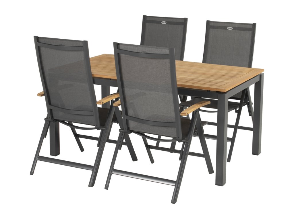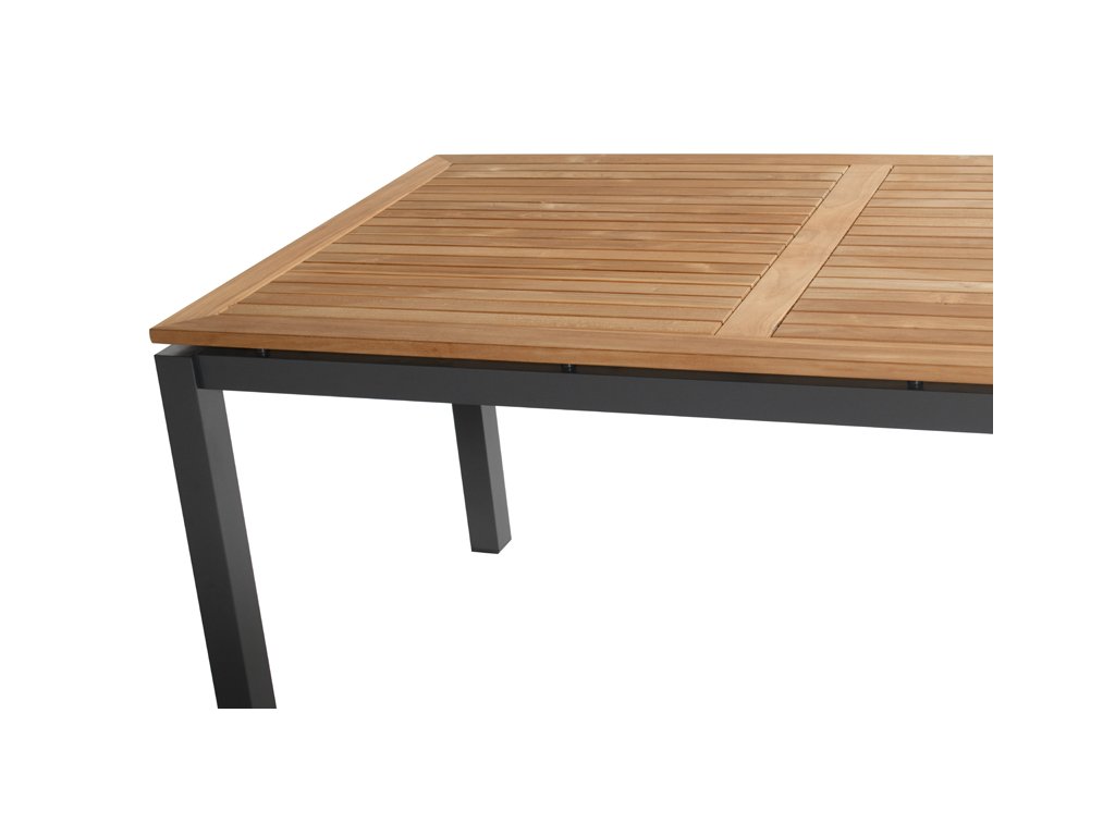Stůl je vyroben z hliníkové robustní základny s teakovou stolovou deskou. Oba materiály jsou nenáročné na údržbu. Hliník a teak ve směsi! Teaková deska dodává stolu přirozený vzhled. Tyto materiály jsou také velmi odolné vůči různým povětrnostním vlivům a nepřízni počasí. Díky tomu může stůl zůstat venku po celý rok.