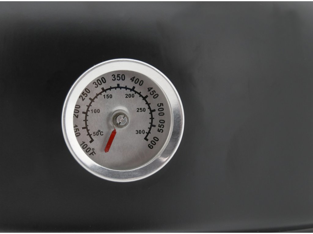 Jednotlivé části grilu jsou vyrobené z vysoce kvalitní oceli a lze je zcela odejmout. Gril i víko jsou opatřeni madly z odolného plastu. Víko grilu je opatřeno teploměrem pro snadnější kontrolu grilovacího prostoru. Mezi další výbavu patří regulovatelná ventilace a dvířka pro doplnění paliva či kontrolu pokrmů.