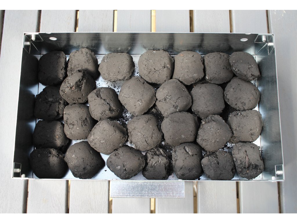 Udírna obsahuje dva zásobníky, velký, do kterého se dá dřevěné uhlí a malý, který je určen na aromatické piliny pro dosažení výborné chuti připravovaných pokrmů.