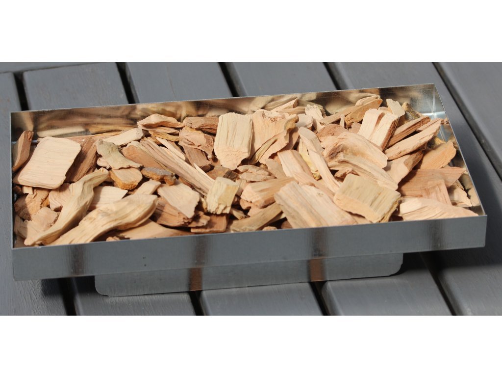 Udírna obsahuje dva zásobníky, velký, do kterého patří dřevěné uhlí a malý, který je určen na aromatické piliny pro dosažení výborné chuti připravovaných pokrmů.