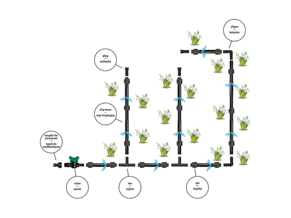 Sestava kapkovacích hadic a příslušenství pro skleníky do šířky 3 m a do...