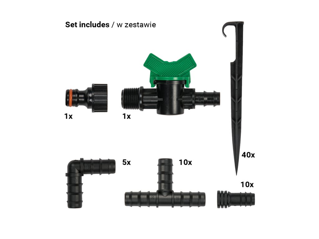 Dopřejte své zahradě pravidelnou a úspornou závlahu bez zbytečného plýtvání vodou. S touto sadou získáte vše potřebné pro efektivní zavlažování s minimálními nároky na údržbu.